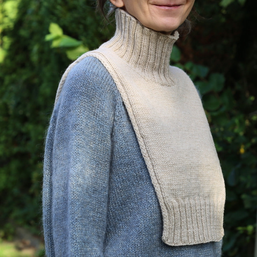 Nori Cowl is worked seamlessly, from the top down, using European shoulder construction.